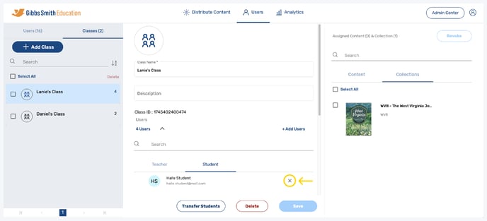 Important: Removing a user from a class does not delete the user. Please note that content must be revoked before a user is deleted in order to recover content licenses.